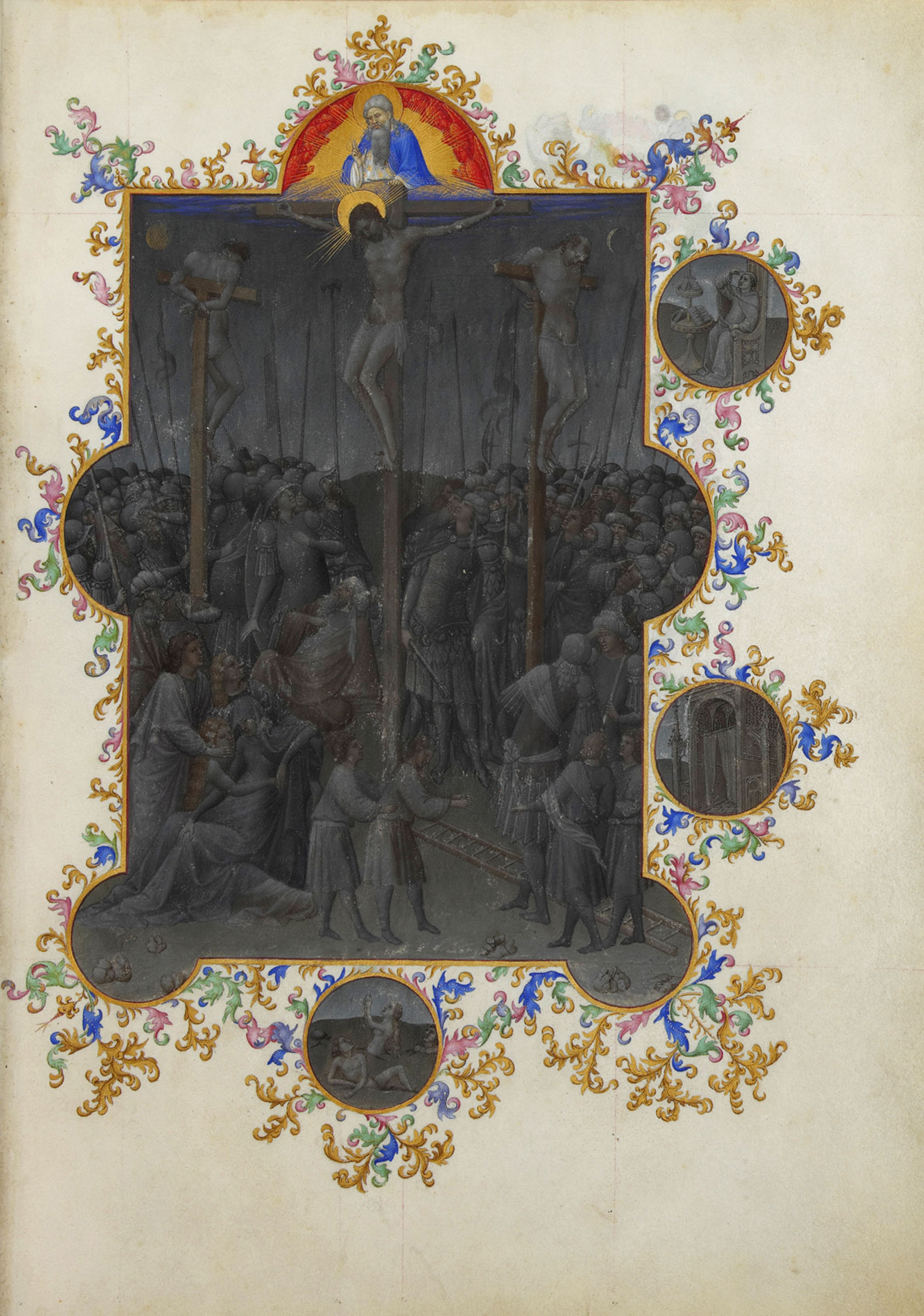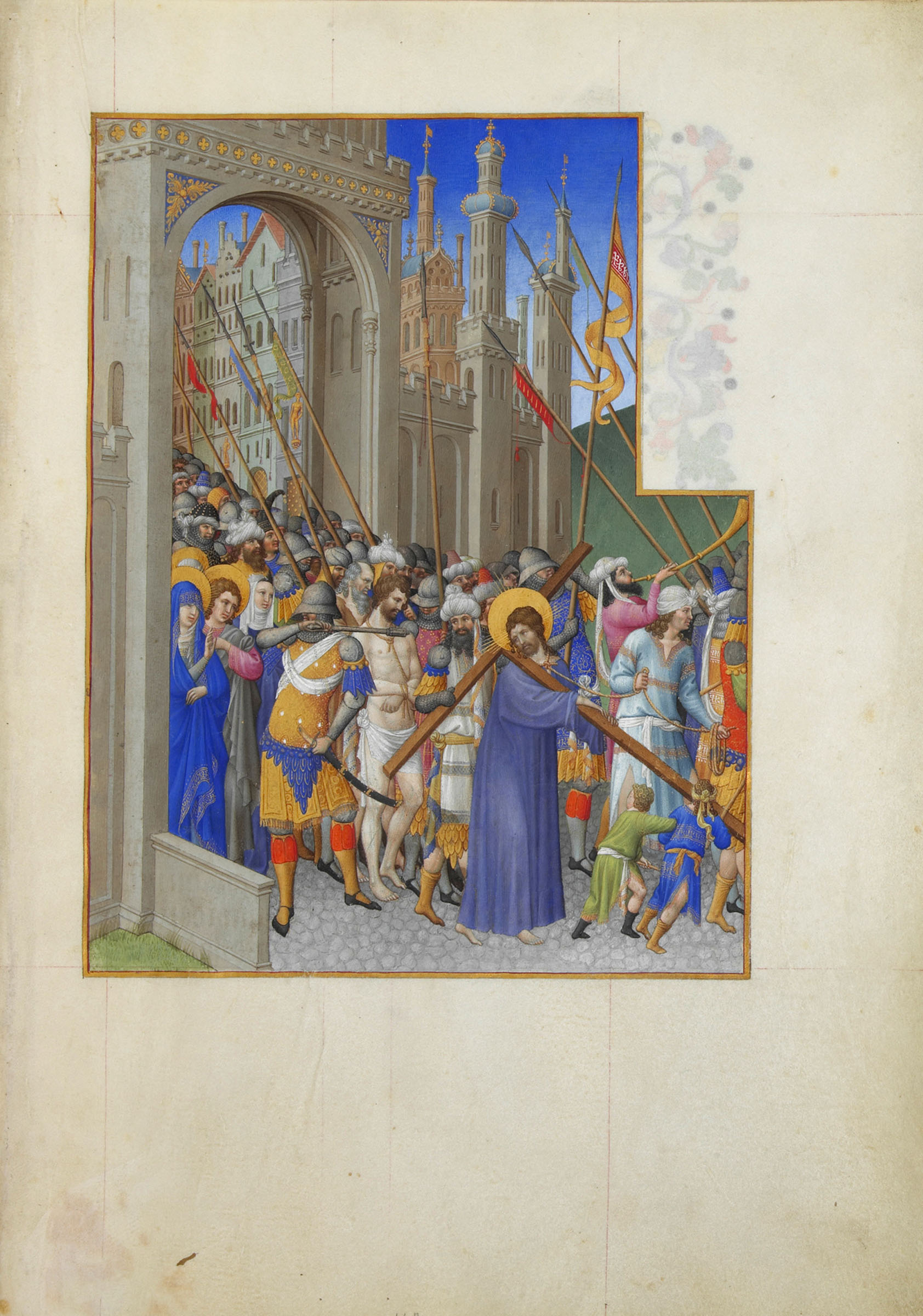 De middeleeuwen en daarmee het werk van de gebroeders Van Lymborch, wordt gedomineerd door het christelijk geloof. Het lijdensverhaal van Christus speelt daarin vanzelfsprekend een prominente rol. In een serie van zes levendige en paginagrote miniaturen in de Très Riches Heures wordt het verhaal op een zeer innovatieve en dramatische manier verteld.
