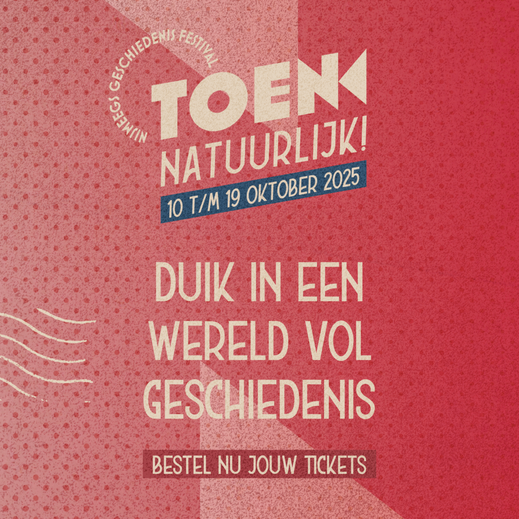 TOEN is het Nijmeegse geschiedenisfestival dat de verhalen van vroeger op een interactieve manier tot leven brengt. Samen met historici, archeologen en andere experts ontrafelt het festival de geheimen van de stad en deelt ze op een verrassende manier met het publiek. Van wandelingen en workshops tot quizzen en proeverijen: TOEN laat zien dat geschiedenis allesbehalve stoffig is. Sinds 2023 biedt het festival ieder jaar opnieuw inspiratie en vermaak. TOEN Festival is een officiële hot-spot van de Maand van de Geschiedenis.