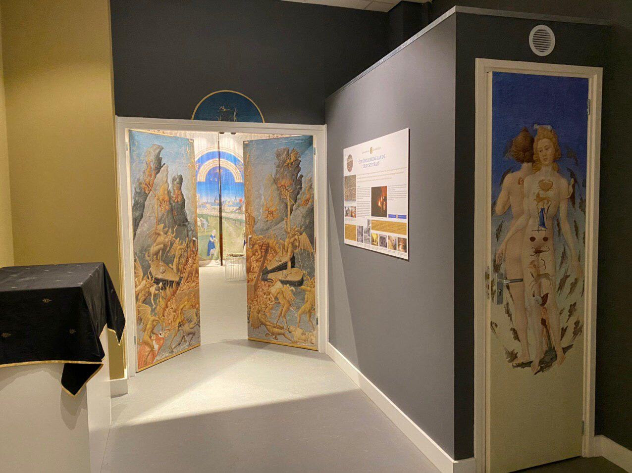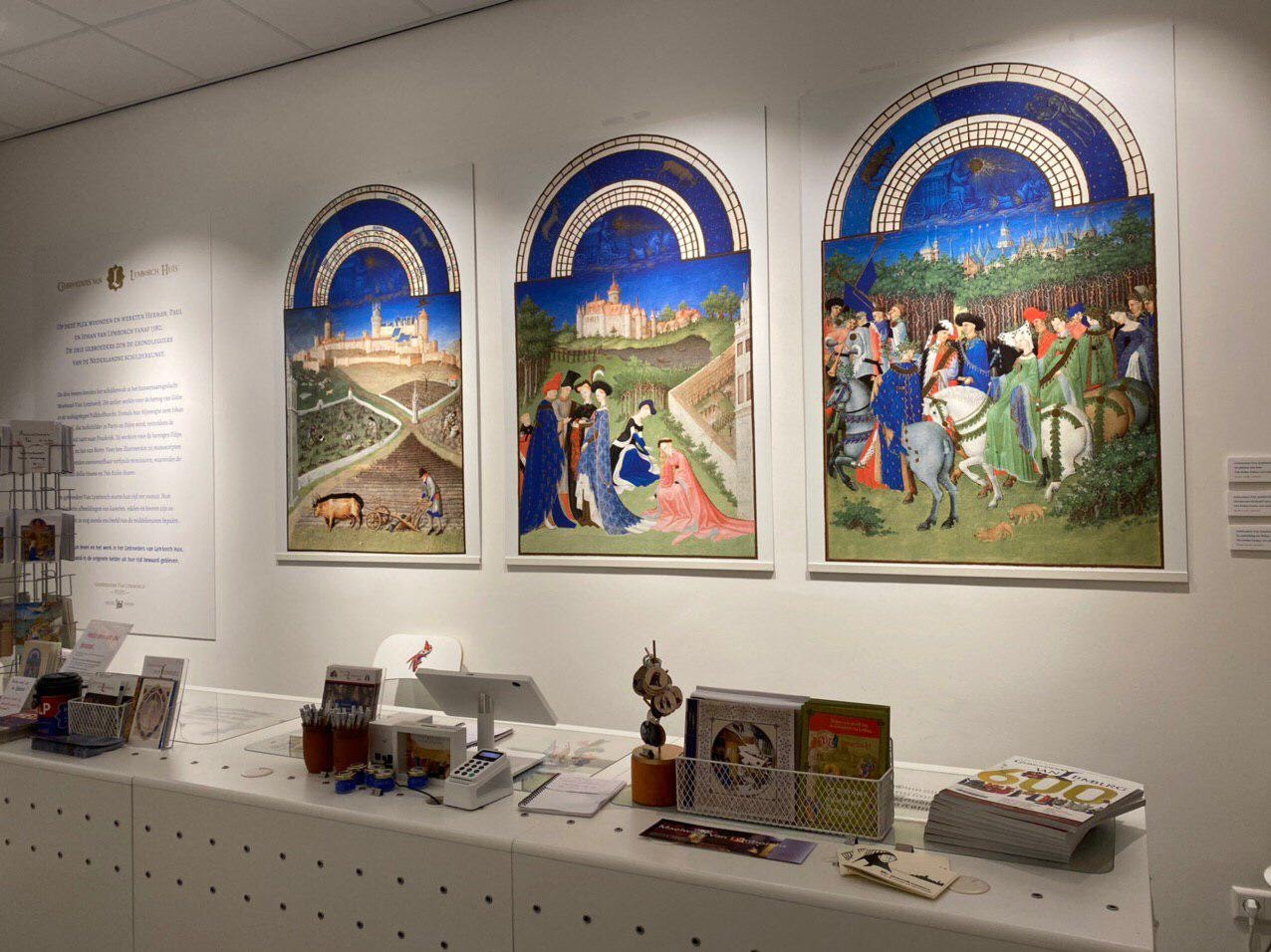 De expositieruimte achter is ‘opgevrolijkt’ met de satanische afbeelding van de Hel, die sterk doet denken aan het werk van Jheronimus Bosch. Alleen is deze afbeelding van de gebroeders van Lymborch 100 jaar ouder dan Bosch werk! Ook hangt daar nu permanent de raadselachtige Anatomische Mens. Ook zijn de pagina’s van de facsimile’s van de Belles Heures en Très Riches Heures omgeslagen. Hier valt nu de Gregoriusprocessie te bewonderen. Een dubbele paginaminiatuur met een revolutionaire combinatie van tekst en beeld.